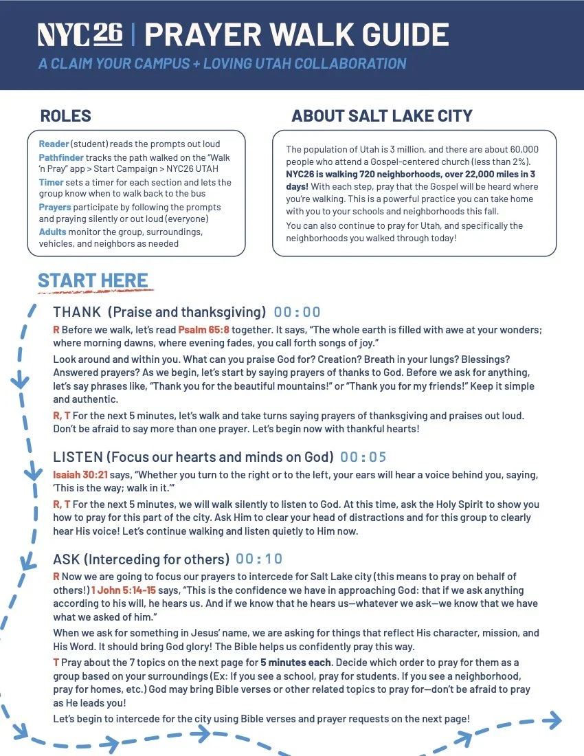 Once you download the App, look for the Campaign named NYC26 Salt Lake City in the meantime you can practice anywhere using the Personal Prayer Walk.
