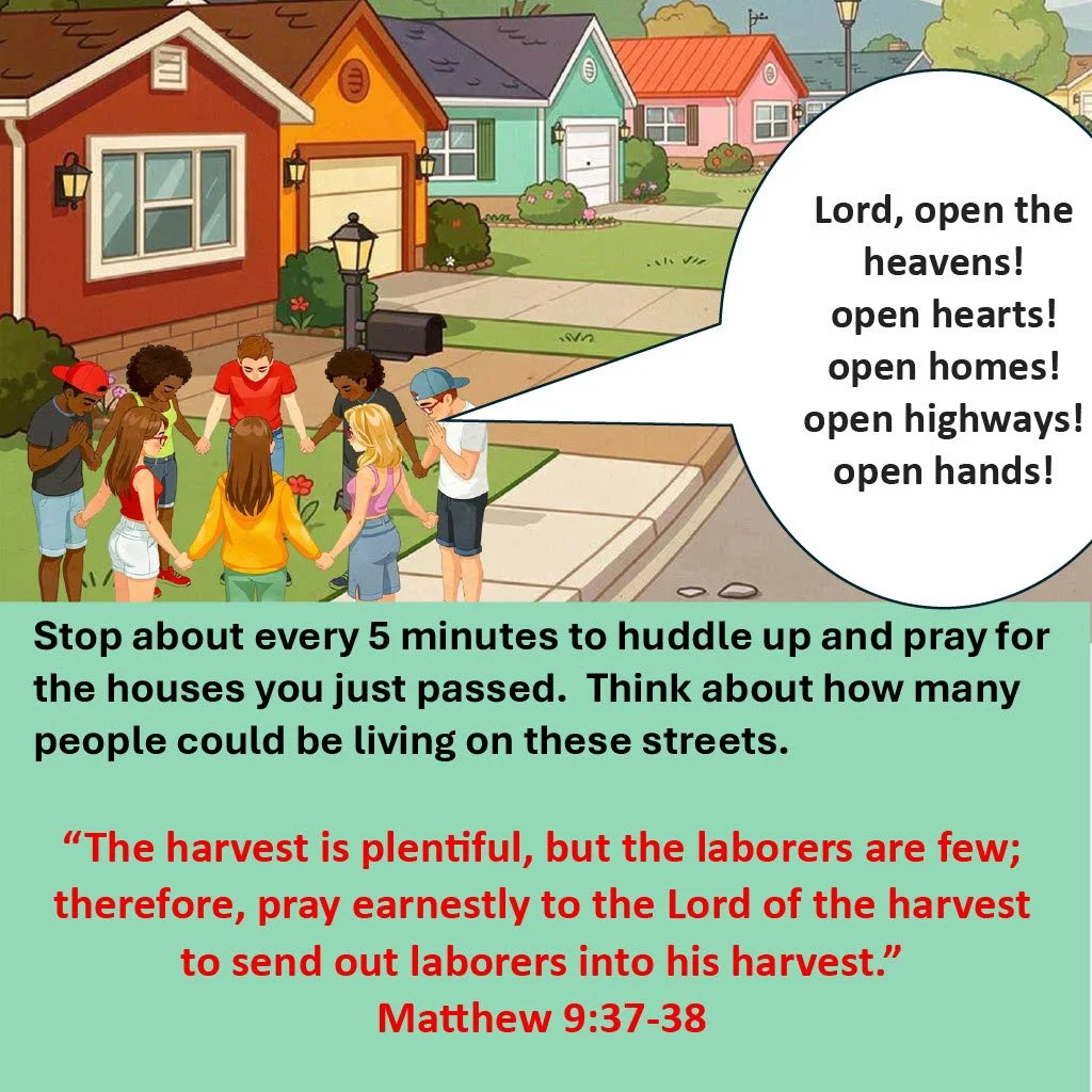 “LORD, OPEN HOMES” (JOHN 4:39) - “Many Samaritans from that town believed in him because of the woman’s testimony.” Throughout the New Testament, whole households would come to faith. If you want to see God transform this community, pray that “every person in every house experience Jesus in a personal and profound way.”
